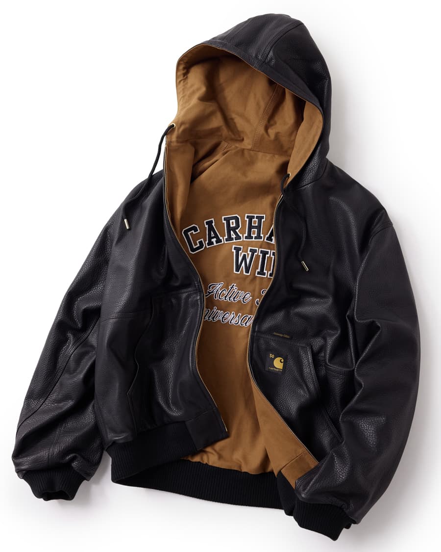 カーハートWIPの代名詞でもあるディアボーン・キャンバスを使用したジャケットから、ストーンブリーチ加工で使い込んだような風合いが特徴のデニムモデル、ストリートウエアをより洗練した形で表現したレザーモデルの4種類。時代が変わっても、本質を変えずに時代に合わせてアップデートされ続けている。アクティブジャケットはこれからもカルチャーの象徴として、時を超えていく。