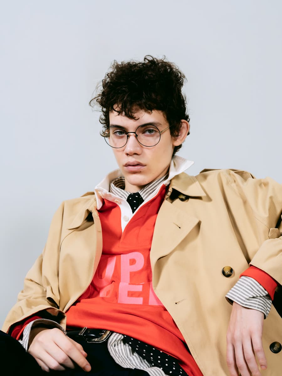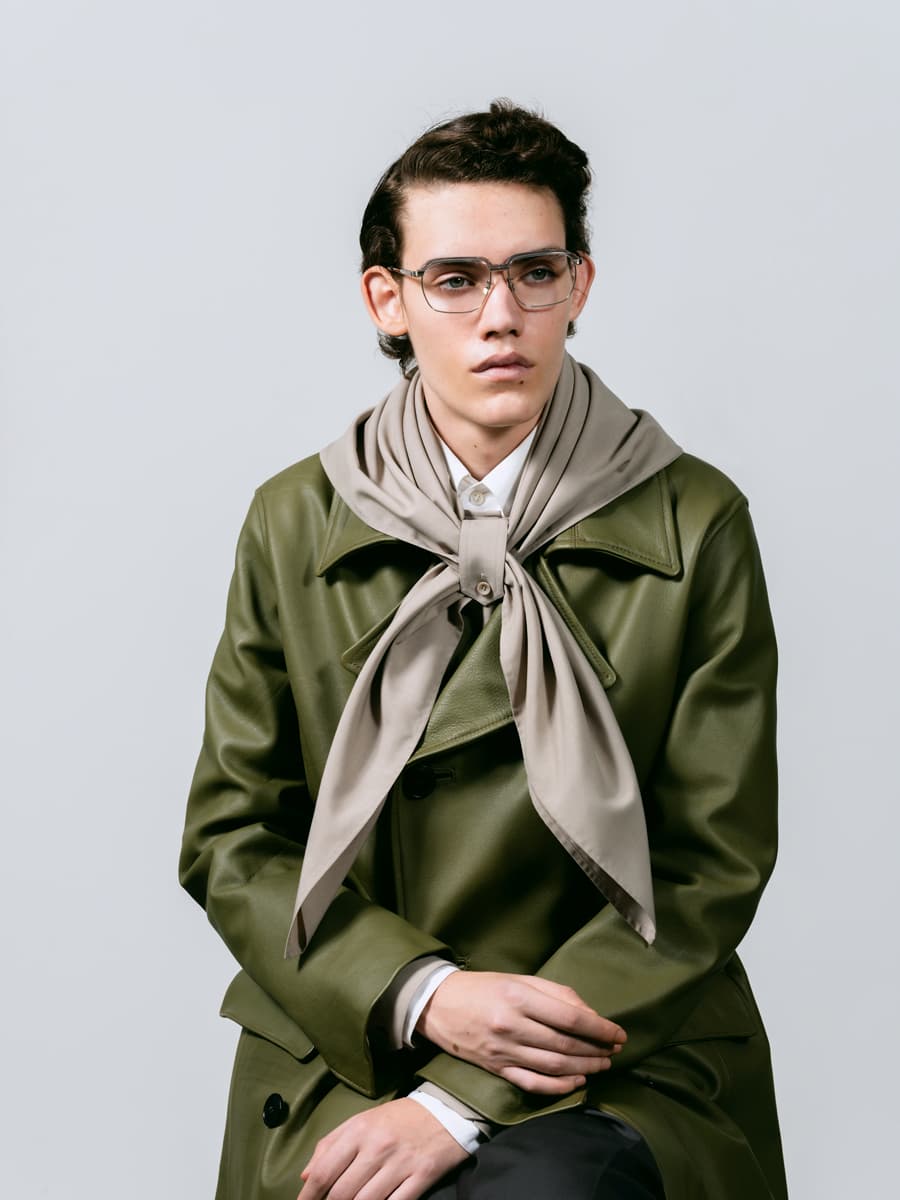 今年創業120年を迎えるMASUNAGA。創業者の増永五左衛門は福井でメガネ産業を築いた先駆者の一人だ。歴史に裏打ちされた確かな技術で、多彩なシェイプを追求し続けている。大ぶりなラウンドシェイプを軸に組むナードな雰囲気のレイヤードスタイルは、細部に宿るエレガンスがあるからこそ野暮ったくならない。極限まで無駄を削ぎ落とした細いフレームが上品な輝きを放ち、装いに洗練された印象を与えてくれる。