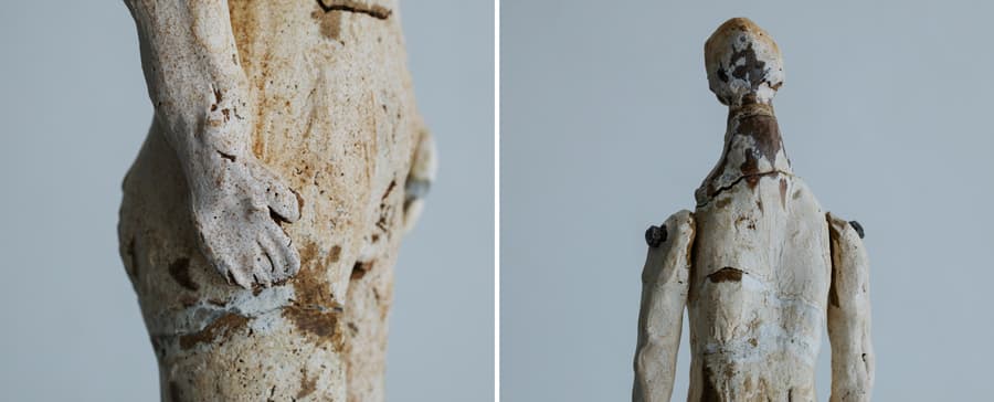 「立花英久さんはこれまでに、たくさんの展覧会をしてきました。この最初の作品はまだ不完全であり、試行錯誤や戸惑いの中で作られたもの。でも、その不完全さにこそ純粋さを感じたのです。初期作品というものは本人の不安や不確かさ、迷いみたいなものが作品にこう滲んでいて。それが、とても人間的な温かみとなり、なぜこの塑像を作ろうとしたのか、その動機までも伝わってくる。英久さんは女性をモチーフにしていますが、ぼくが思うに、彼にとっての人間というのは女性なんですよね。それは例えば、母親かもしれないし、もっと大きな存在なのかもしれない。人間の象徴のようにも感じます。作品は“人間とは何か”という問いを見るものに問いかけている感じがするんです」。