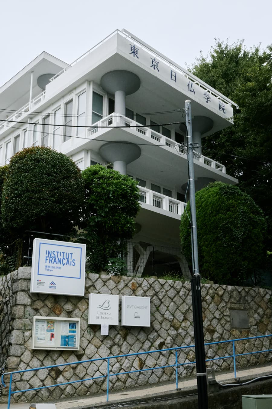 飯田橋駅から外堀通りを進み、市ヶ谷台に至る逢坂の登り口の小高い敷地に建つ「東京日仏学院」は、フランス政府公式の語学学校・文化センターだ。映画館、図書館、アートギャラリー、フランス関連書籍を扱う書店「パサージュ・リヴ・ゴーシュ」、フレンチ・レストランの「ロワゾー・ドゥ・フランス」を備え、フランス語を学ぶ人たちだけでなく、ここを訪れる人々に気軽にフランス文化に触れることができる開かれた施設であり、東京においてフランスをまるごと味わえる雰囲気が親しまれている。