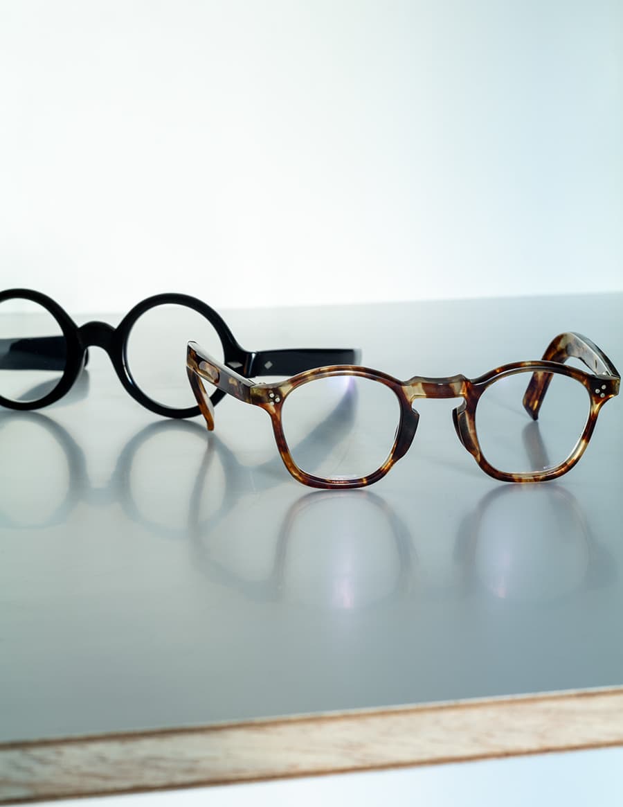 「当時の職人が手で作ったフレームで、いわば今のアイウエアデザインの原種みたいな存在。セルの厚み、芯なし、キーホールブリッジ、3つのカシメなど、今市場にあふれているデザインの元ネタは、だいたいこの時代のフランスか、そこから渡ったアメリカに行き着くと思います」。