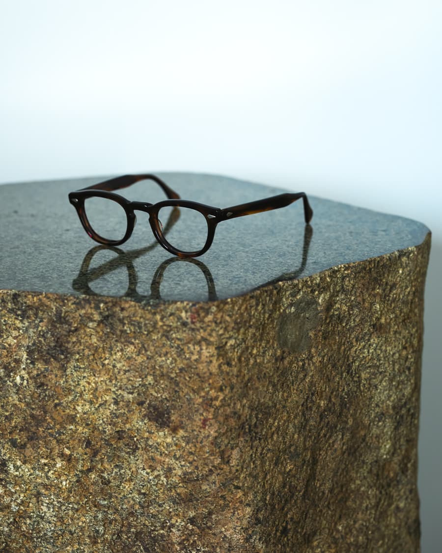 「メガネもカメラもレンズも何個も同じものを買って、使い比べることが好き。レンズで言うと、ライカのヘクトール73mmを4本とか、50mmはもう何本買ったかわからない。そうやってエビデンスを増やしていくと、個体差が見えてくるんです。『これは誰かが磨いているな』、『これが本当の30年代の写りだな』とか。純度の高いオリジナルだけを残して、それ以外は手放す。その作業を続けていくと、『オリジナル族には、次の世代にそれを継承する責任があるんだな』と自然と思うようになる。運命というか、ミッションのような。メガネも同じです。ヴィンテージか復刻のどちらかを選ぶのは人それぞれ自由です。でも、ダブルエックスのデニムと一緒で、オリジナルとリプロダクト品は明らかに波動が違う。元々持っている固有周波数のようなものが違う。そこに惹かれちゃう人間は、もうオリジナル族として生きるしかないんです。諦めましょう」。