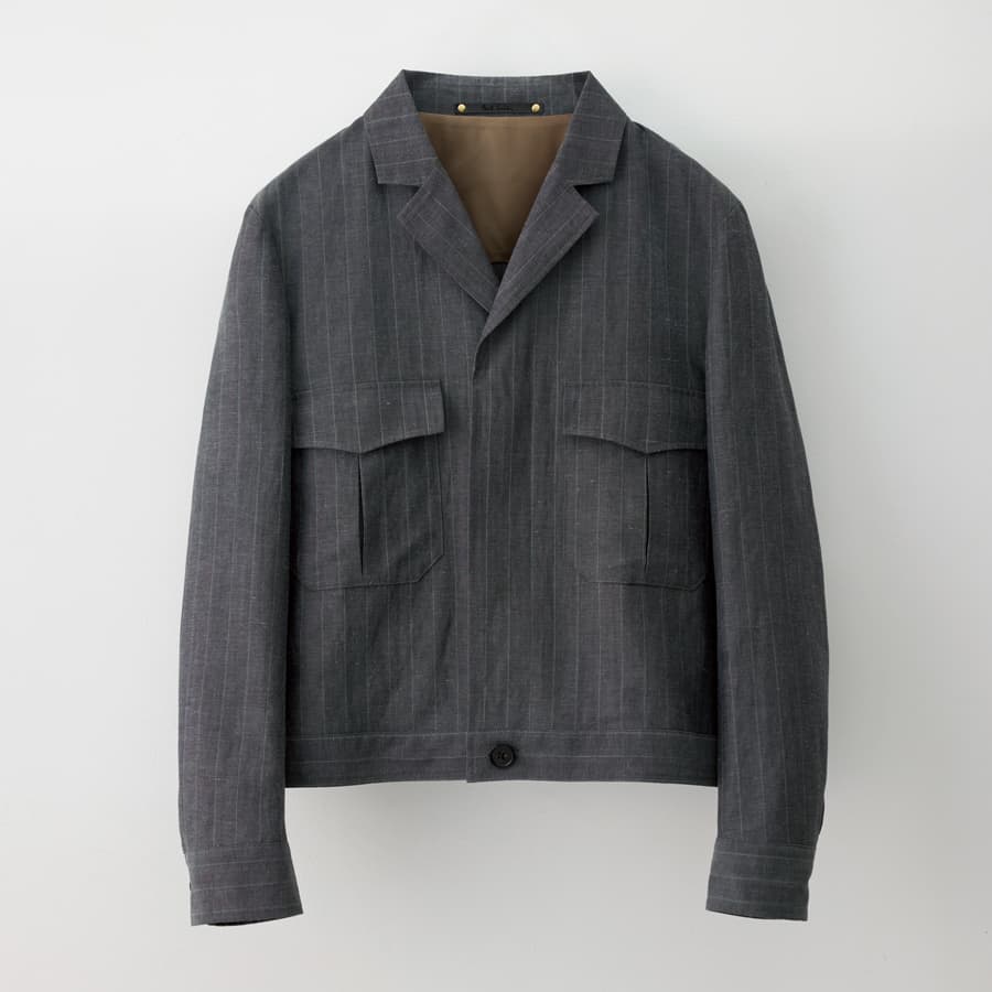 ジャケット発祥の地、英国出身のポール・スミスが大切にする“ひねりのあるクラシック”が息づくブルゾン風ジャケット。広めのストライプはポール・スミスらしい軽快さを生み、爽やかなウールリネンが上品な佇まいを引き立てる。ゆったりかつ、ショート丈なシルエットがひねりの効いた印象を演出し、裾のボタンがさりげない遊び心を効かせる。